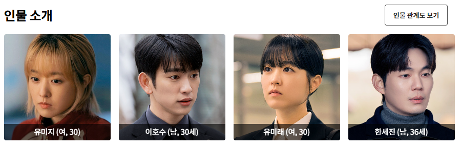 - 유미래: 금융 공기업 직원으로 완벽주의 엘리트 언니